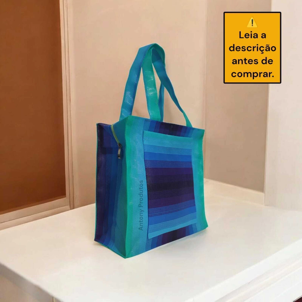 A bolsa tote que você precisa para o dia a dia e muito mais! Com seu design moderno e versátil, ela é perfeita para ir à praia, ao parque ou à feira. Feita com nylon de alta qualidade, ela é resistente e durável, além de ser super espaçosa. O zíper garante a segurança de seus pertences e as alças longas proporcionam conforto ao carregar. Não perca essa oportunidade de ter uma bolsa prática e estilosa!