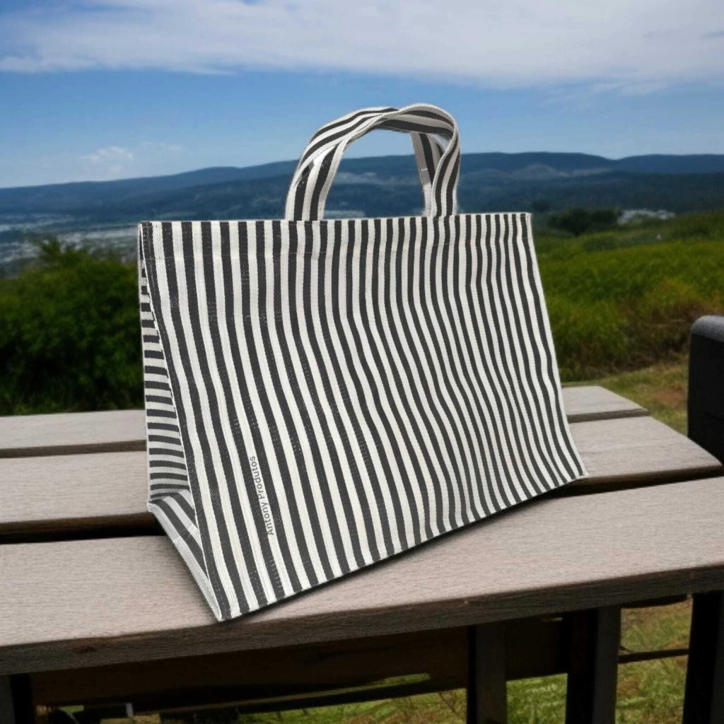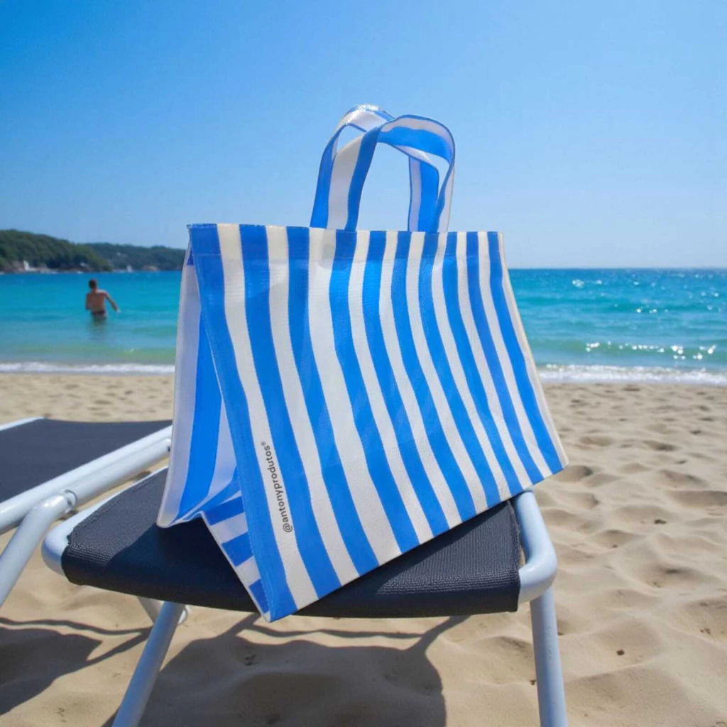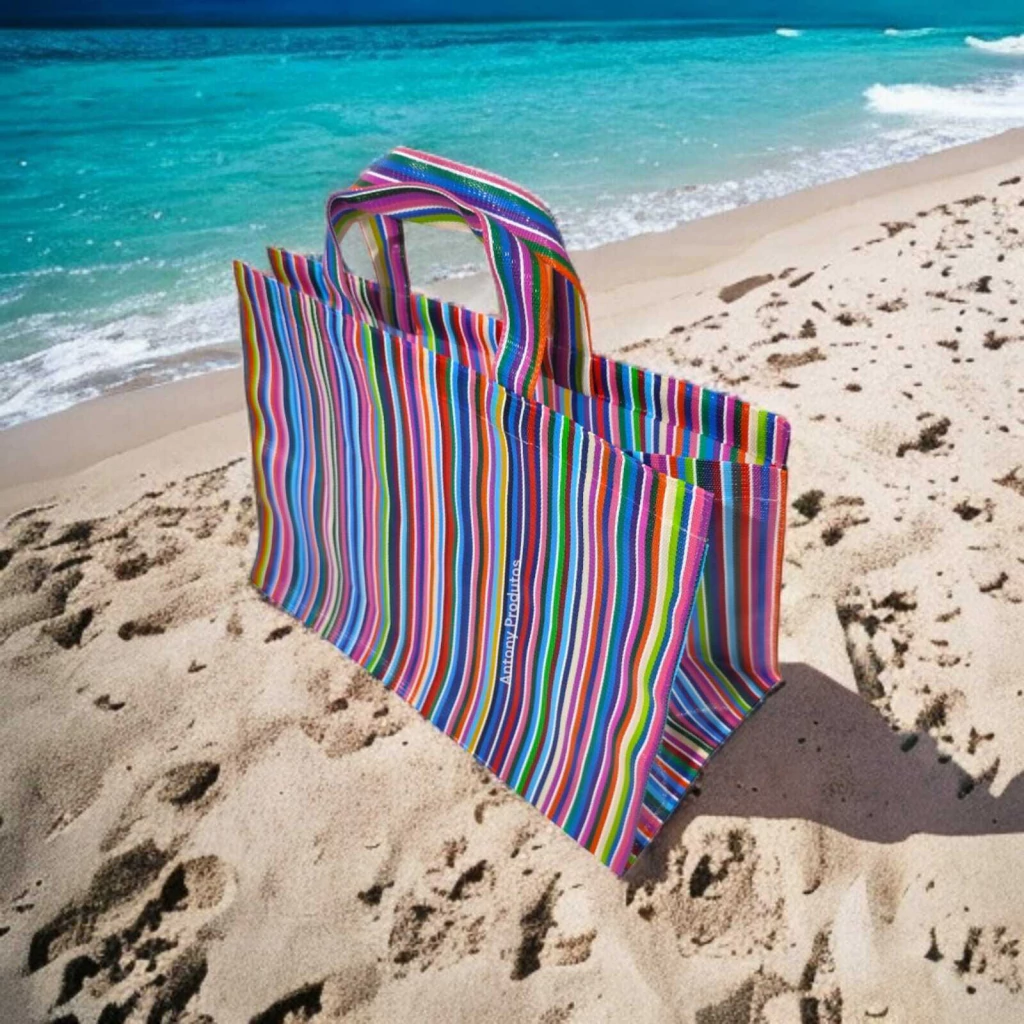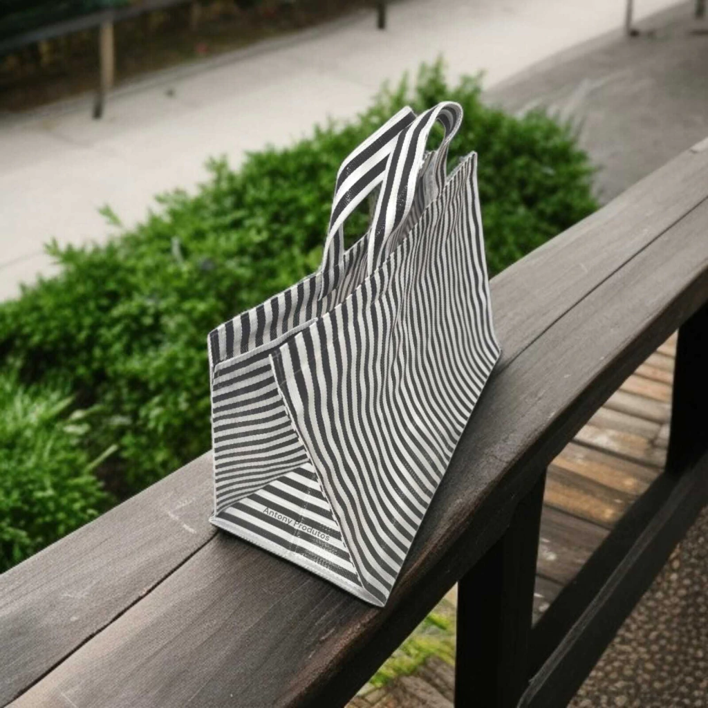 Feita de tela plástica (nylon), essa sacola é ecológica e resistente, perfeita para suportar o peso das suas compras sem abrir mão do estilo. Suas alças proporcionam conforto e facilidade ao carregar, tornando-a uma companheira indispensável em feiras, mercados e passeios.